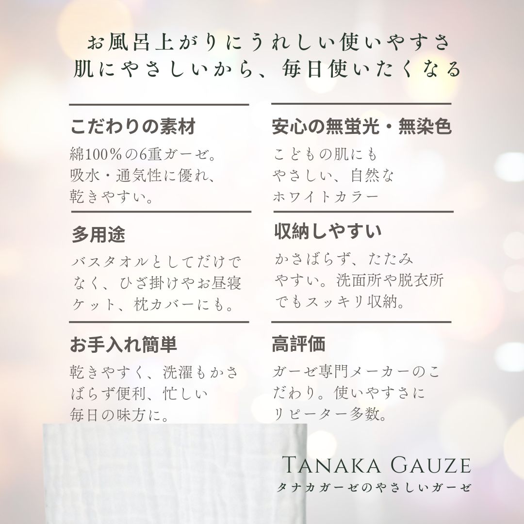 おとなバスタオル/こどもバスタオルおとくなファミリーセット お得なファミリーバスタオルセット/Tanaka Gauze/やさしいガーゼ 贈り物に ツイートする シェアする 販売価格: 12,546円(税込み) 会員価格 (税込み) 通常価格 17,956円(税込み) 在庫 商品コード 990375X2X2-990379X2X2 JANコード おとなワイドバスタオル4枚+こどもワイドバスタオル4枚 袋入 おとなワイドバスタオル2枚+こどもワイドバスタオル4枚 袋入 おとなワイドバスタオル4枚+こどもワイドバスタオル2枚 袋入 おとなワイドバスタオル2枚+こどもワイドバスタオル3枚 袋入 おとなワイドバスタオル2枚+こどもワイドバスタオル2枚 袋入 数量 - + カートに入れる カテゴリー ご自宅用に最適な袋入 メーカー タナカガーゼ ブランド 「ファースト・ラップ」 キャンペーン タナカガーゼがラジオ番組で全国に紹介されました。| 出産準備| 自宅用に| ペット用 便種 宅急便 製品名「ファースト・ラップ」 おとなバスタオル・こどもバスタオルセット規格おとなワイドバスタオル見た目 約48x110cmこどもワイドバスタオル見た目約48x72cm各ガーゼによって、縮み具合が異なる場合がありますが、生地のサイズは全て同じで不良品ではありません。組成綿100%数量袋入が複数入っています。発送宅急便(発地:大阪府)対面での受け渡し発送となります。送料送料は別途頂戴しております。こちらで確認いただくか、注文画面で発送先を入力しご確認くださいこの商品の従量ポイント(送料決定のための指数)は15です。表示金額が送料となります。注文数に応じて次の便種で発送。・ネコポス(コンパクトな商品、従量ポイントは~2)※送料は全国一律料金です。・宅急便コンパクト(小さいサイズの商品、従量ポイントは3~4)・宅急便(従量ポイントは5~)※送料はお届け先によって異なります。(発送元大阪府) 宅急便コンパクトは専用BOX代70円(税込)を含んだ額。原産国:中国/検品包装:日本環境保護や資源の有効活用を考慮し、また、お届け時のごみ削減の為、簡易包装にてお届けしております。枚方市のふるさと納税のお礼品にも採用されています。 RECOMMENDED ITEMS こんな商品も買われています 洗顔タオル/ホワイト/Tanaka Gauze/やさしいガーゼ 1,007円(税込み) フェイスタオル/袋入/ホワイト/Tanaka Gauze/やさしいガーゼ 1,753円(税込み) 赤ちゃんのおふろにやさしいガーゼ/赤ちゃんのお風呂説明書付/袋入/Tanaka Gauze/やさしいガーゼ/沐浴ガーゼ 沐浴布 1,967円(税込み) こどもバスタオル/ワイド・スリム/Tanaka Gauze/やさしいガーゼ 3,915円(税込み) 赤ちゃんのおふろにやさしいガーゼセット/箱入/Tanaka Gauze/やさしいガーゼ 贈り物に / 沐浴ガーゼ 沐浴布 7,480円(税込み) おとなバスタオル/ワイド・スリム/ホワイト/袋入/Tanaka Gauze/やさしいガーゼ 4,873円(税込み) しかくいおくるみ/ホワイト/袋入/Tanaka Gauze/やさしいガーゼ 2,790円(税込み) 手さげ巾着バック入赤ちゃんのおふろにやさしいガーゼセット/Tanaka Gauze/やさしいガーゼ/ 贈り物に / 沐浴ガーゼ 沐浴布 9,760円(税込み) しかくいハンカチ/袋入/ホワイト/Tanaka Gauze/やさしいガーゼ 2,190円(税込み) しかくいおくるみ 箱入/Tanaka Gauze/やさしいガーゼ/ 贈り物に 5,280円(税込み) やさしいガーゼと泡のボディソープ・素あわ物語のセット/箱入/Hakuzo Medical x Tanaka Gauze 贈り物に / 沐浴ガーゼ 沐浴布 4,930円(税込み) おおきめガーゼケット/ 1枚/箱入 /ホワイト/Tanaka Gauze/やさしいガーゼ 贈り物に 4,620円(税込み) ガーゼケット/ホワイト/ 1枚/袋入 /Tanaka Gauze/やさしいガーゼ 3,773円(税込み) こどもバスタオル/ 2枚/箱入/Tanaka Gauze/やさしいガーゼ 贈り物に 4,840円(税込み) 泡のボディソープ/Hakuzo Medical/素あわ物語 1,782円(税込み) やさしいガーゼとボディソープのお得なセット 贈り物にもご家庭でも 8,980円(税込み) おとなバスタオル/2枚/箱入/ワイド・スリム/ホワイト/Tanaka Gauze/やさしいガーゼ 贈り物に 5,830円(税込み) しかくいおくるみとハンカチのセット/ホワイト/箱入/Tanaka Gauze/やさしいガーゼ 贈り物に 7,480円(税込み)